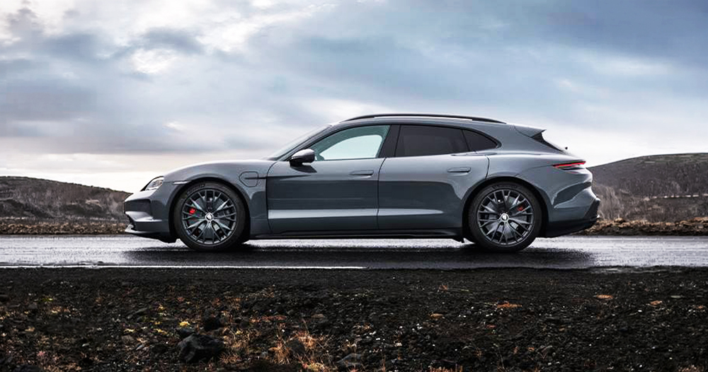 Porsche’s Taycan Sport Turismo brings sports-car performance into the electric wagon category. Sharing its architecture with the Taycan sedan, the Sport Turismo keeps Porsche’s low, athletic stance while adding a more practical rear cargo area. The result is a vehicle that blends everyday functionality with the brand’s signature performance character.